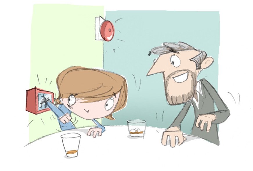 A piercing shriek of an alarm immediately flooded through the bar, followed by a general commotion from various groups of people who swirled uncertainly, calling and yelling to try and make themselves heard above the din. Sturridge’s face immediately broke into a broad smile. “Genius!” he mouthed across at me.