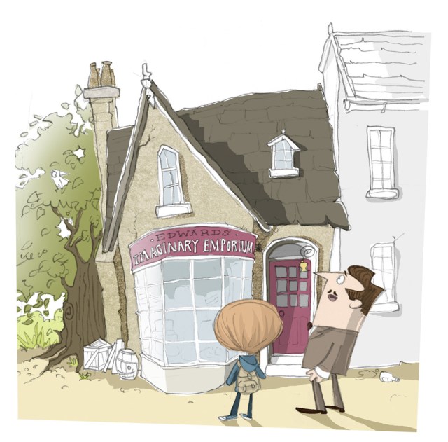 “No, here we go,” Michael pointed hopefully to a sign above the doorway of the last cottage in the row. “Edward’s Imaginary Emporium – General Stores. This looks like our best bet.”