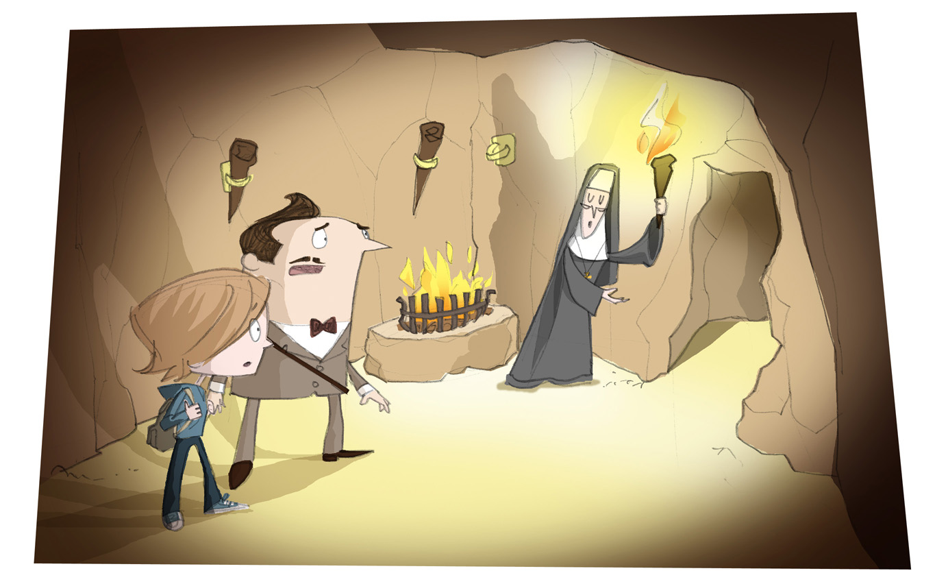 We entered a small empty chamber that had apparently been cut from the mountain itself. In one corner a fire burned in a low brazier. The Reverend Mother pulled a torch down from the wall above and lit the end from the brazier. It provided just enough flickering light to illuminate the outline of a passage that appeared to lead directly into the centre of the mountain. “I’m sorry, are you sure this is the way to the Gabelsbergerstrasse?” asked Michael uncertainly.