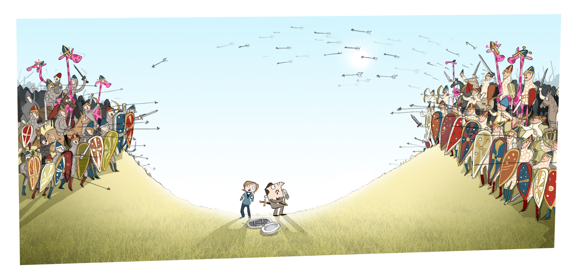 To be strictly accurate it was actually a Zone of Several Wars, with a number of disparate battles and scraps being carried out in close proximity. The landscape of the imagination being home to a good number of conflicts, it was apparently quite common for them to cluster together in such fashion. It meant that by and large the fighters could get on with their squabbles without getting in the way of more peaceable landscape dwellers. Unfortunately, as our journey took us slap bang through the heart of the zone, it posed a not inconsiderable hazard.
