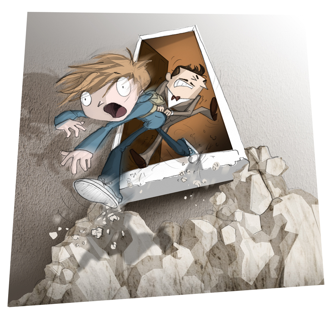 I was struck by an icy blast of wind and I found myself swaying precariously over a dizzying drop of a hundred feet or more, the vertiginous castle wall plunging away to a rocky gully down below. I scrabbled frantically in an effort to grab hold of the door or the doorframe or anything to stop my fall, but my momentum was carrying me forward.