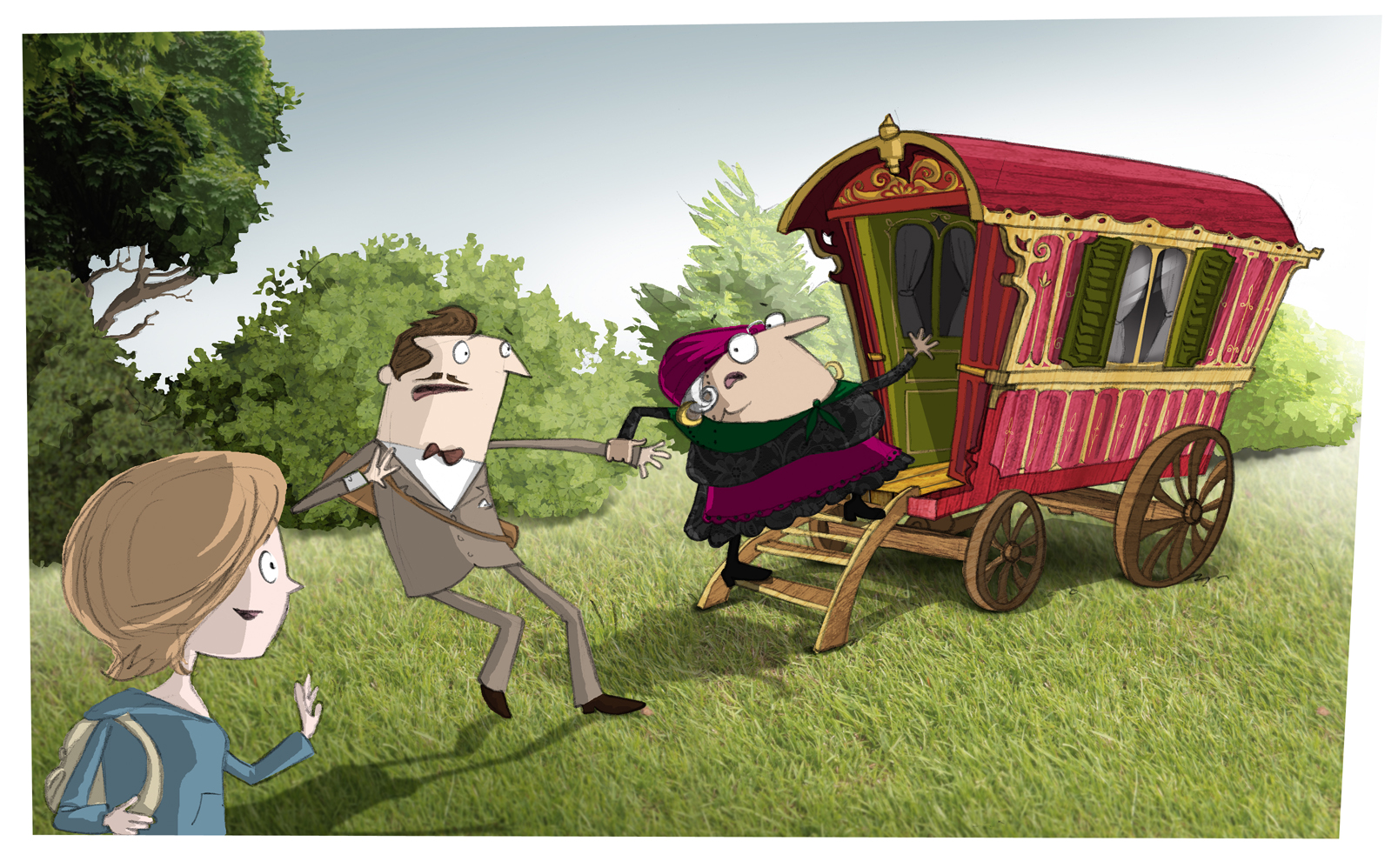 It was quite clear that Michael was contending with a will much stronger than his own and there was only ever going to be one winner of this tussle. Eventually, still protesting feebly all the way, he allowed himself to be led up the steps into the colourful Romany caravan to have his fortune told.
