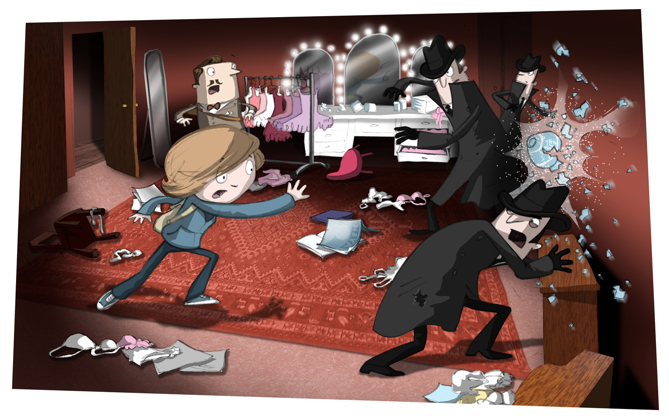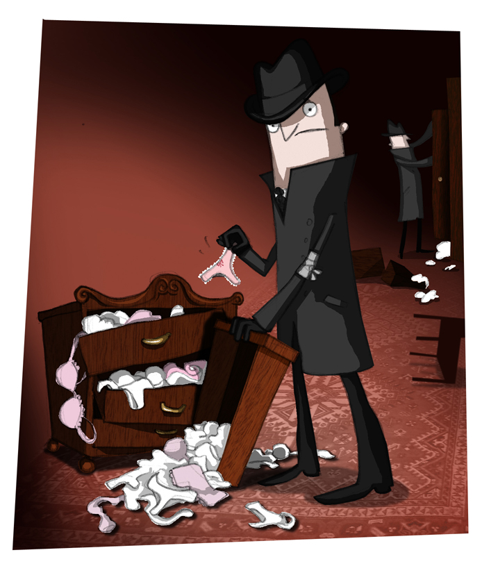 In fact it was Karl who seemed to sense our presence before we had even made a sound. He suddenly paused midway through the act of tipping a drawer full of lacy underwear onto the floor and turned around. There was an uncomfortable moment of silence as a dawning look of recognition slowly spread across his face.