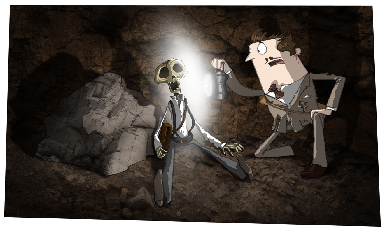 “I don’t really see how he could have missed it,” came Michael’s voice from the other side of the cavern. We both swung round to see Michael holding up his lamp over a large boulder. In its shadow, leaning back against the cavern wall, sat Ratty McCulloch.