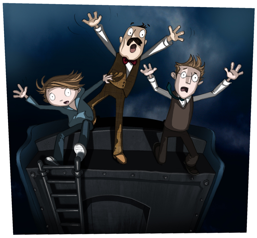 There was a sudden loud screech and the engine lurched violently, tipping the accountant straight off the top of the tender and down into the cabin below. I thought I heard a muffled cry from Biggins suggesting that he had been unfortunate enough to break the accountant’s fall but I was too busy grasping tightly to Charters as we tried to avoid following suit. A shower of sparks flew up from the wheels as the brakes gripped tightly and the train began to slow.