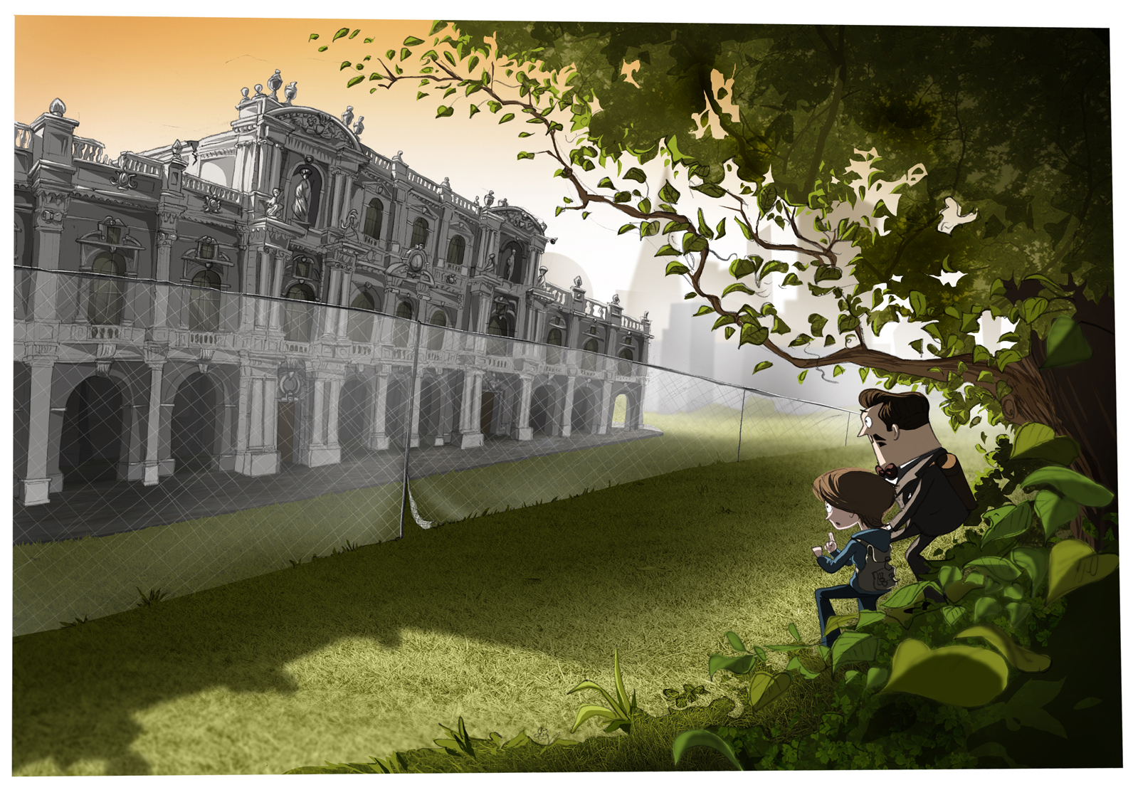 I edged forward as far as I dare under the cover of some low sweeping branches and peered hard in the direction he indicated. It wasn’t easy to see, lying as it did in the shadow cast by a crumbling Italianate palazzo, but careful study revealed that Michael was right. There was indeed a tear in the foot of the wire fence, opening up a narrow gap that might just be wide enough for a full grown adult to crawl through.