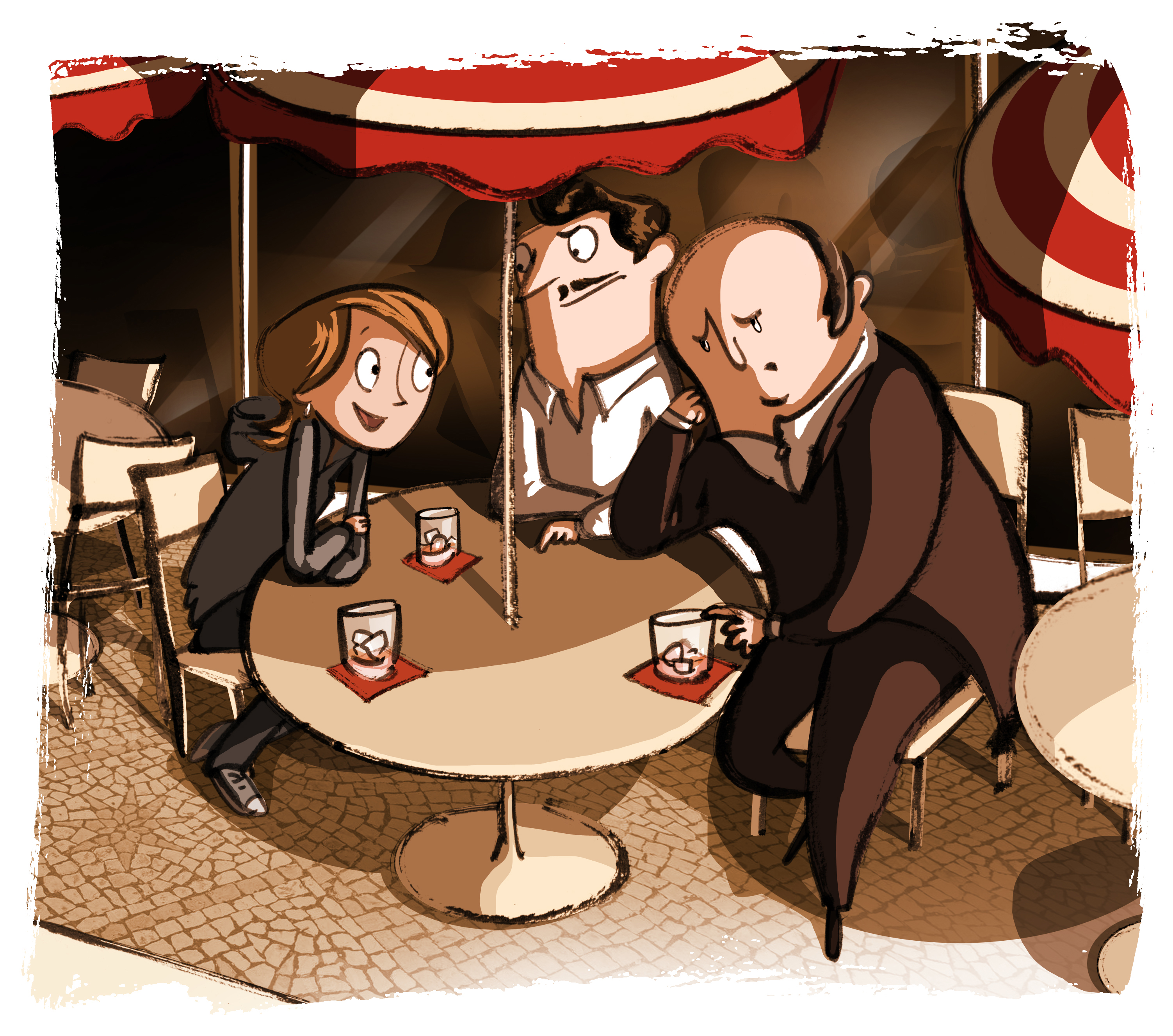 “You see, that’s just what Maia said!” exclaimed James. “But no matter how hard I tried I couldn’t convince Patrick. In the end we had a blazing row in which he called me every shade of yellow he could think of before storming out.” James returned to staring dejectedly at his glass.