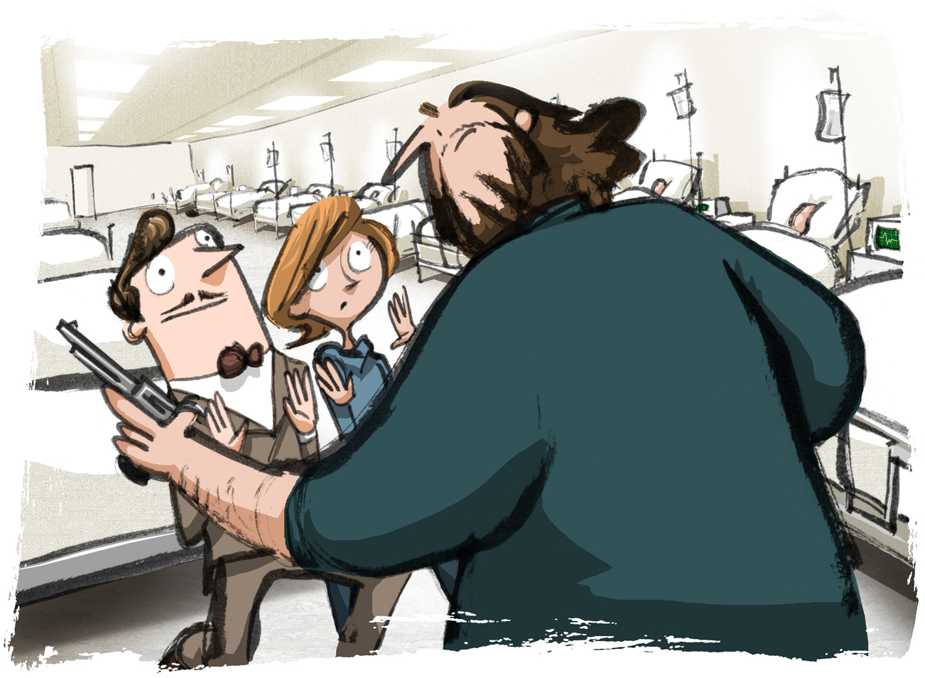 “Well then you ought to know that there’s another room just like this one through that door there,” he told her. “There are more patients through there.”