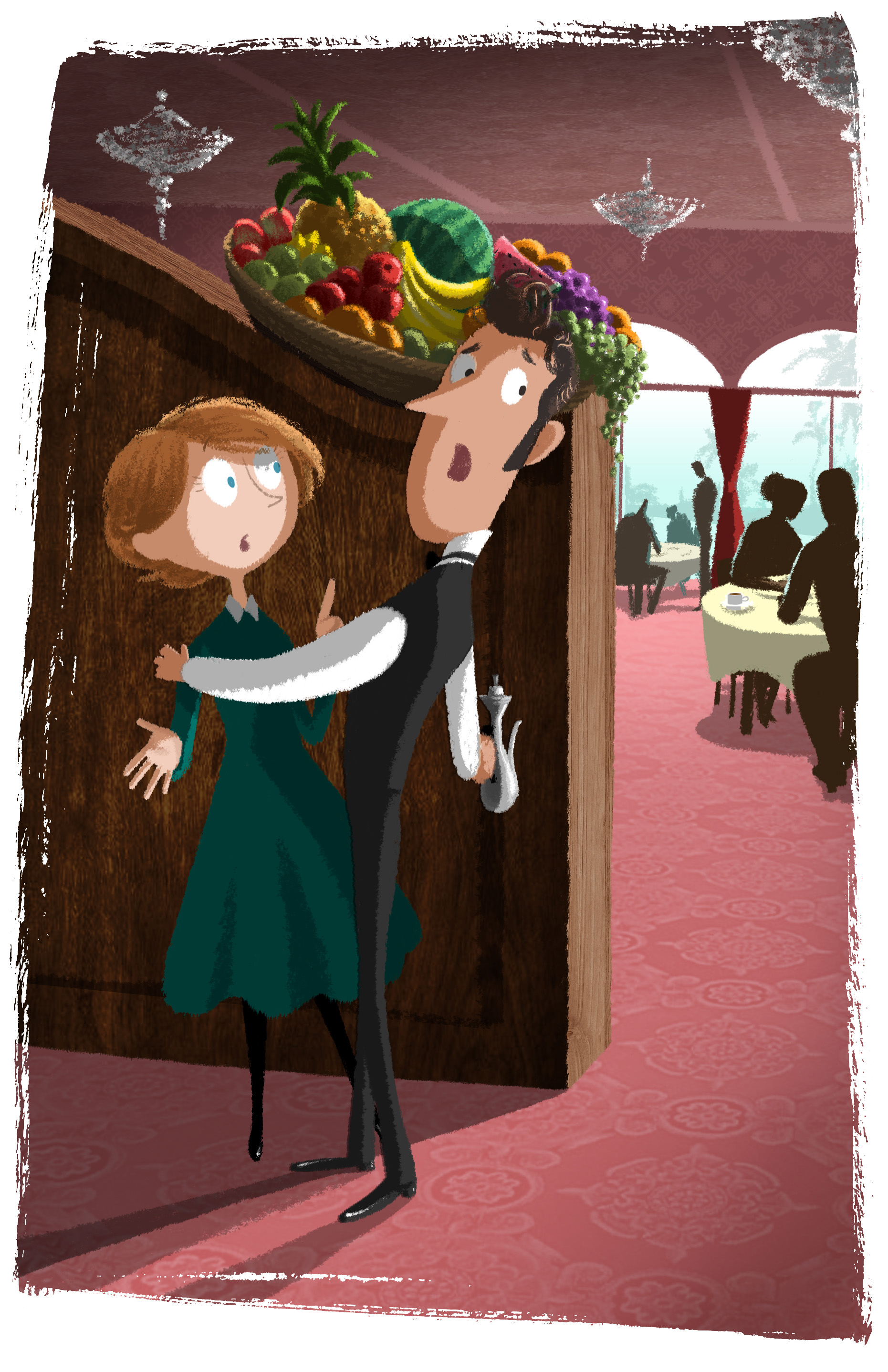 My first thought was to dash straight upstairs to update Felicity but at the last minute I turned away from the lifts and returned to the dining room in search of one last view of the poolside shenanigans. I initially headed towards the glass doors, searching for a fresh angle on the commotion, but then I spotted Eduardo darting between tables in his waiter’s uniform and sensed a better source of information. I waited until he had finished pouring coffee for an elderly couple before waylaying him by a table bearing an extravagant display of fresh fruit.