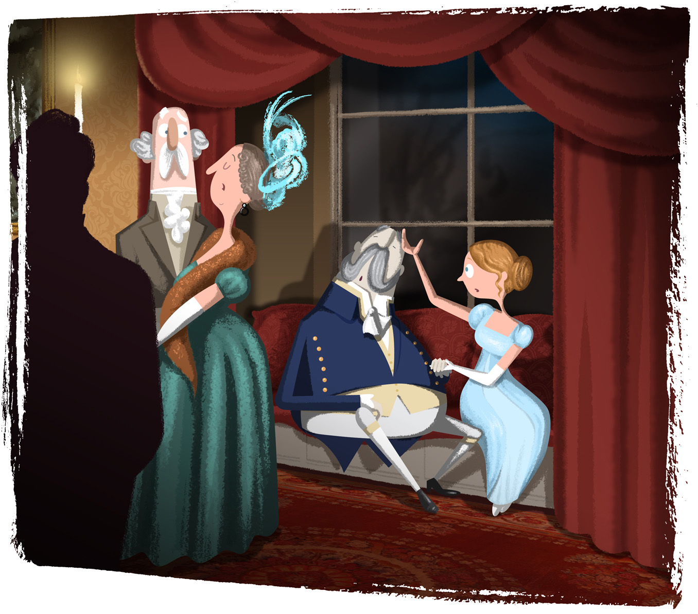 My smile softened somewhat as I recognised the figure as belonging to Miss Emily Somerton, a bright young girl of around twenty whom I had come to regard as one of the more bearable personalities haunting the drawing rooms of Bath. In common with nearly all the young ladies of her era she was possessed of a simpering naivety which could be irritating in the extreme but in her case the genteel manners sat side by side with an eager curiosity and a keen sense of humour which more than compensated. She did come with one major drawback in the shape of a fearsomely stern mother who contrived to never be more than a few feet from her daughter, continually watching over her with all the mournful determination of a vengeful spirit. On this occasion however I could see that Mrs Somerton had been detained a few feet away by Reverend Miller, leaving her daughter with some rare breathing space.