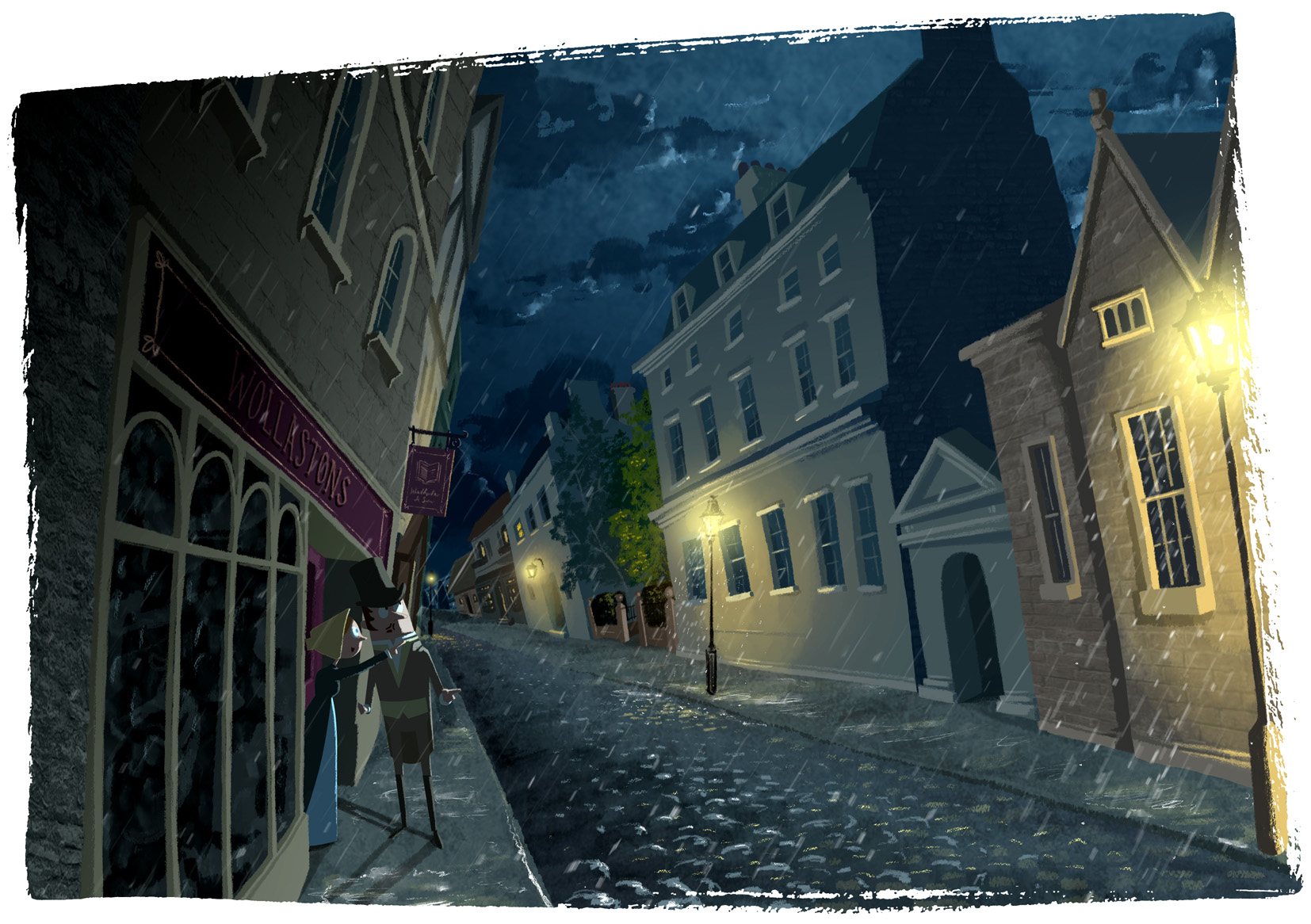 By 7pm that evening the fine weather of the last few days had broken and a steady rain was falling, smothering the finer streets of Bath with a thin sheen of greasy mud and turning the poorer roads and alleys into a quagmire. Michael and I stood huddled in a doorway of the Westgate Buildings, our attention fixed upon the rear entrance of the Hospital of St John opposite. An arched gateway led into a narrow courtyard, beyond which stood a handsome stone building of classical proportions. My hours since tea-time had not been idle and I had led Michael here in order to fill him in on the fruits of my labours.