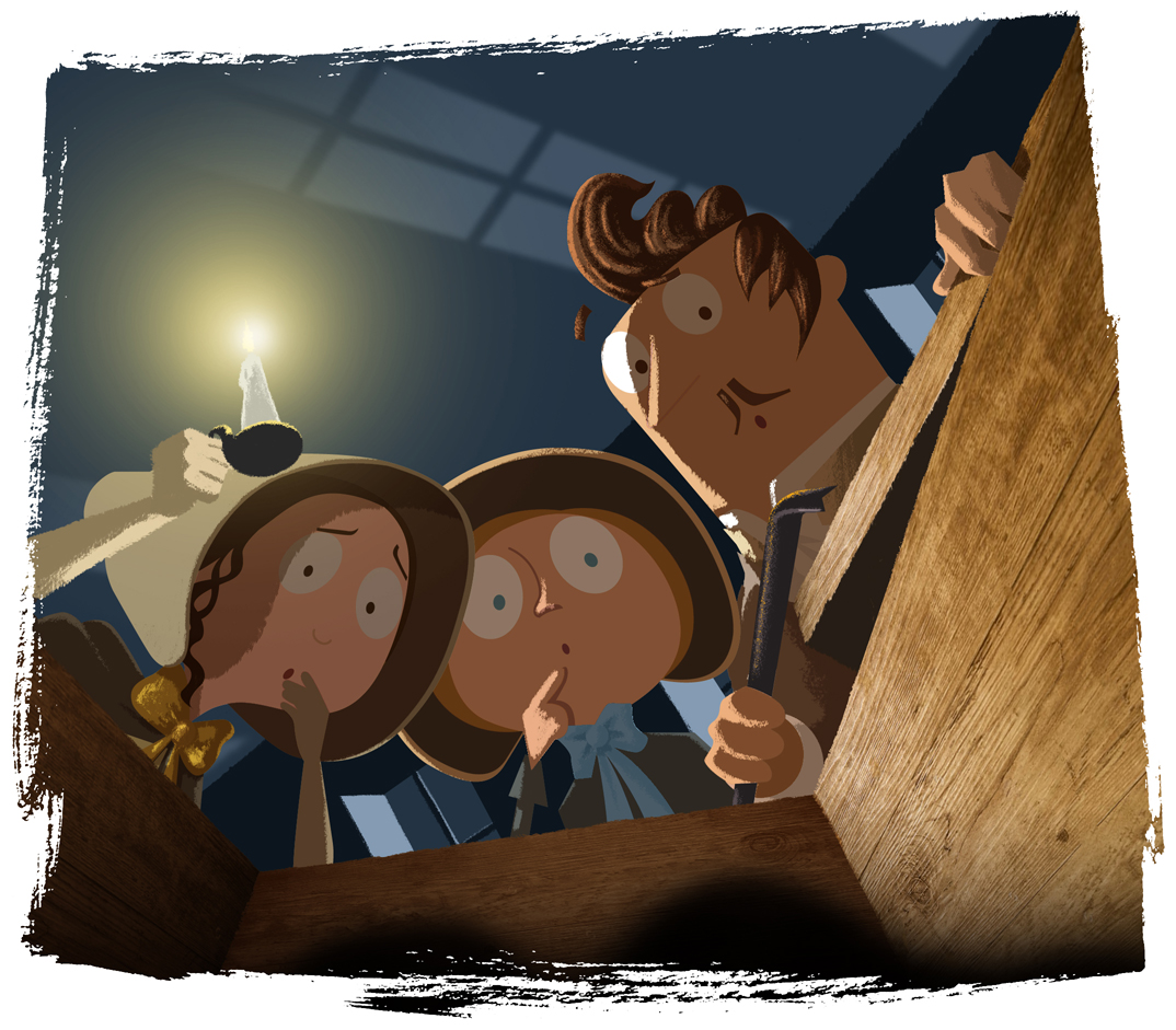“Well, there’s one way to find out,” declared Michael. He hunted around for a moment before discovering a crowbar handily perched on a nearby shelf. Setting his candle down on the window ledge, he worked the crowbar into the slender gap between crate and lid and heaved. The lid rose with a sharp crack. I helped him to ease it onto the ground and then, with a mixture of excitement and dread, all three of us peered into the crate.