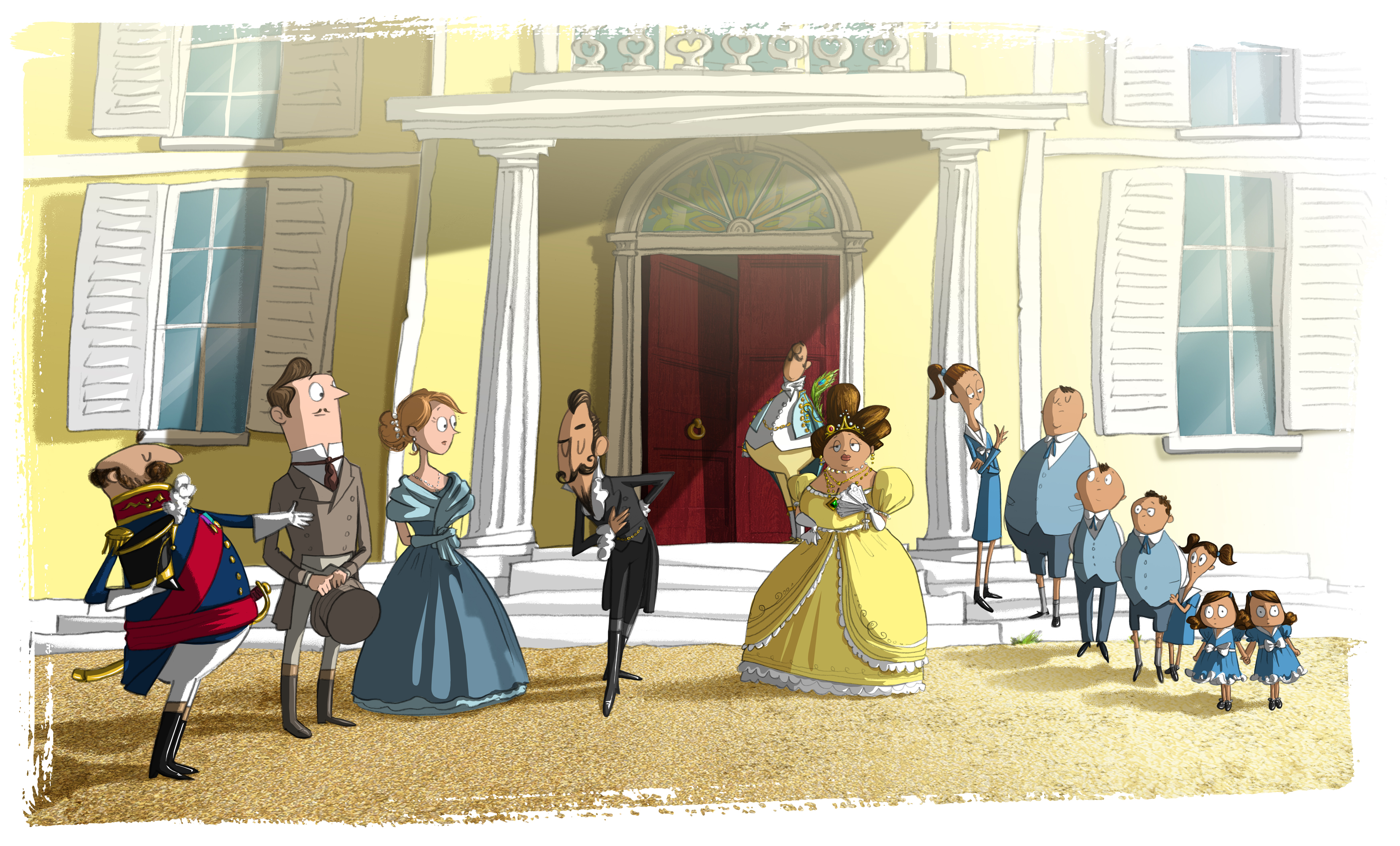 Our carriage completed a full circuit of the Plaza (presumably to grant us a chance to admire the gallows from every angle) before sweeping through the gateway up to the front steps of the Governor’s mansion. A row of smartly dressed people were already lined up on the steps waiting to greet us. As soon as the carriage rolled to a stop the Captain leapt down with a sprightliness which belied his portly figure and hastened to make the necessary introductions.