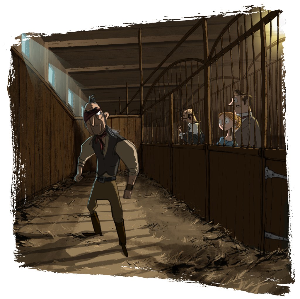 One-Eyed Alfonso held the Governor’s gaze for a moment longer before his eye flicked briefly to a spot just down the corridor. Turning to follow his glance, I noticed a heavy wooden door set within the floor of the stables. If the captured bandit was harbouring hopes of somehow escaping through this trapdoor, I was afraid he was likely to be disappointed for Don Pedro clearly noticed the glance too and responded with a sly laugh.