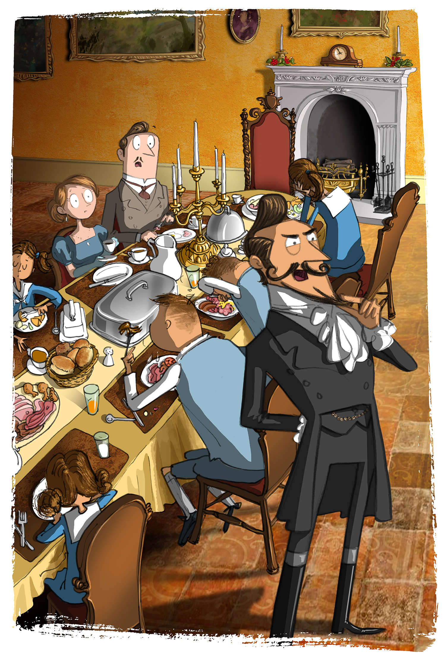 Still reeling as I was from our encounter with Bob, I think it’s hardly surprising that it was a while after Michael and I had finally entered the dining room for breakfast before it occurred to me that there was something not quite right with the picture presented around the table. On the surface, in fact, everything seemed to be very much in order. Don Pedro’s sons wolfed down great platefuls of meat whilst his daughters picked listlessly at bits of fruit. Dona Elena sweated profusely beneath a towering wig and spent most of the meal gazing mournfully at a bowl of sugar. Don Pedro himself sat proudly at the head of the table, pompously spouting a litany of bigoted drivel.